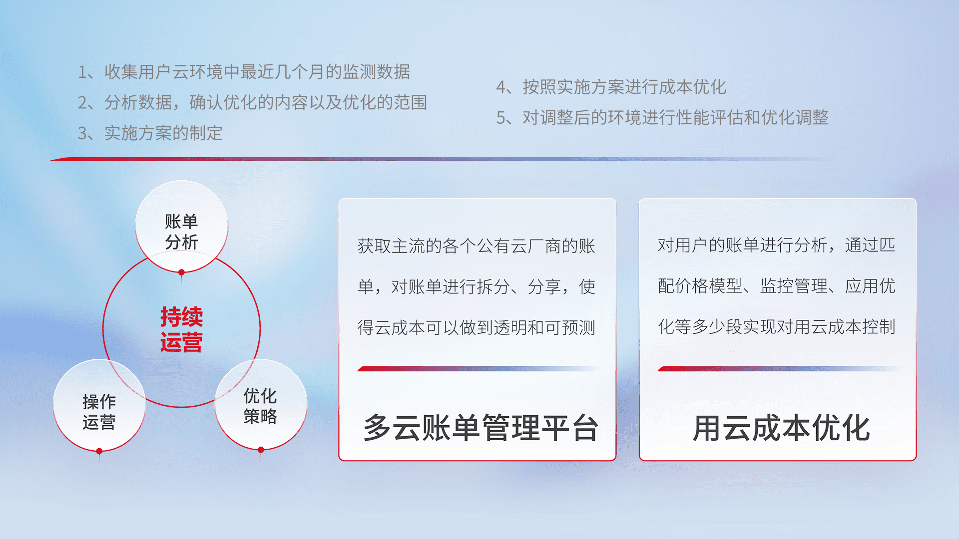 监控业务系统资源开销,,,对资源的消耗精确计量,,实现费用的透明化管理,,,不断提升资源使用率,,,,调整资源购买方式,,,,降低资源费用成本,,,,用云成本可预测、、、、用云费用可优化,,云资源配额有据可依。。